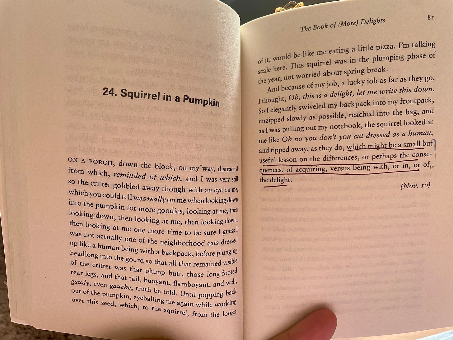 Back at the end of July, I returned to Good Contrivance Farm, where I’ve taken multiple writing classes, for an author event with Ross Gay. Like a good literary citizen, I brought my copies of Gay’s books. BUT, I didn’t have his most recent, The Book of (More) Delights, and so I bought it from the local bookshop rep who was there.